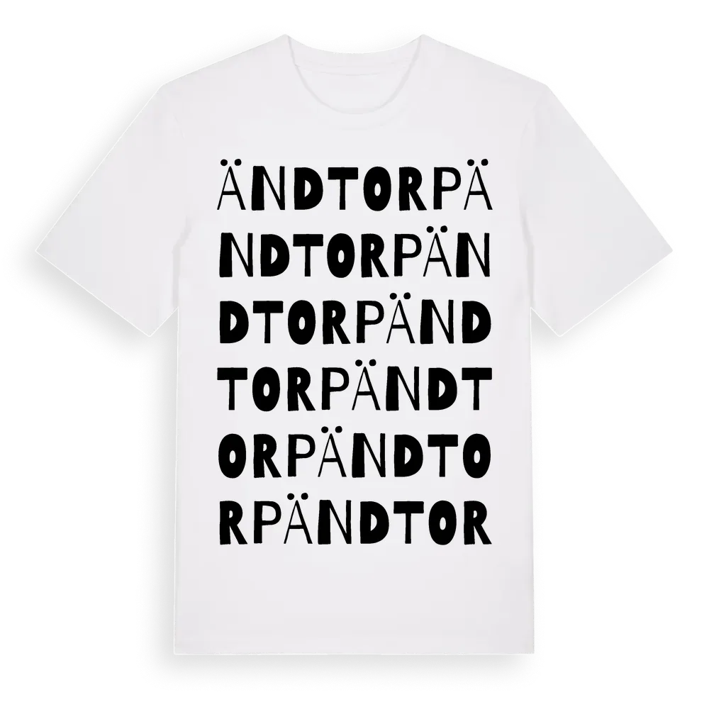 Ändtorp ordlek t-shirt är inspirerad av Ändtorp i Södermanlands län, Sverige. Tröjan är designad för dig som har en speciell koppling till platsen – oavsett om du bor här, har rötterna här eller bara älskar Ändtorp.