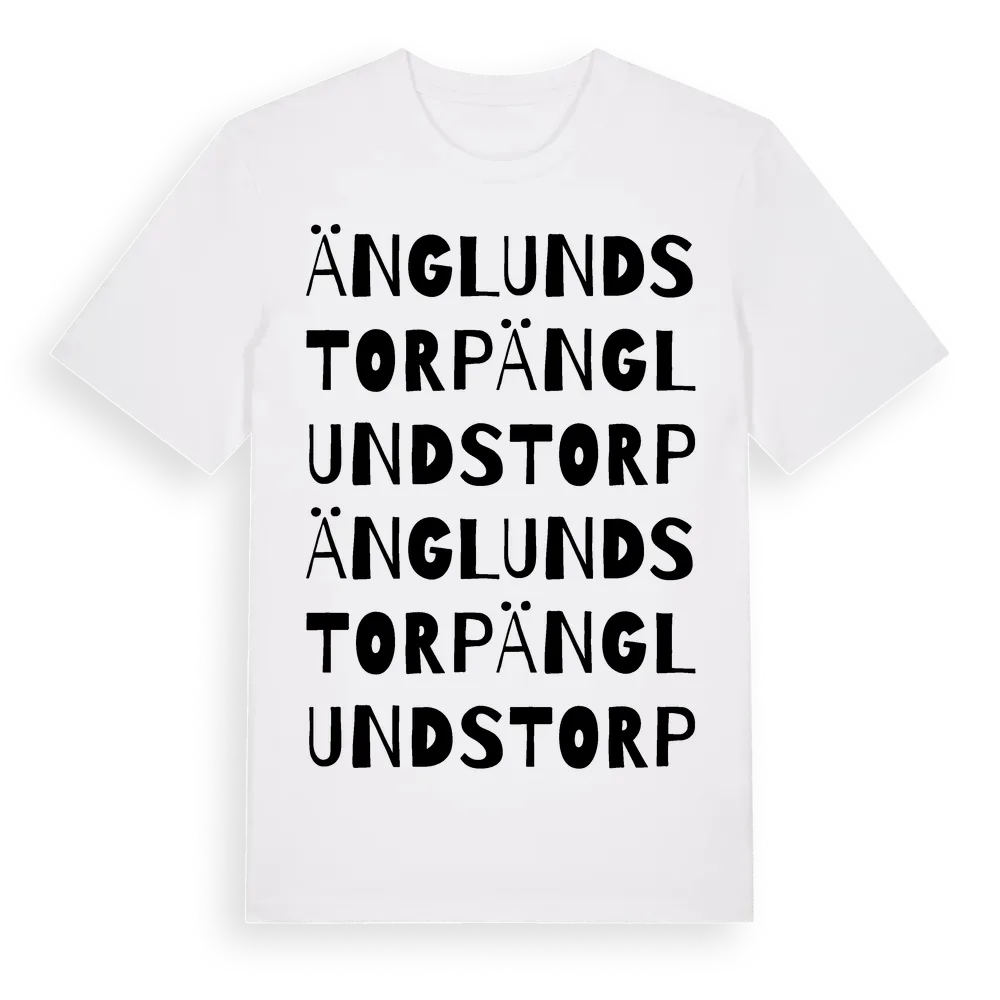 Änglundstorp ordlek t-shirt är inspirerad av Änglundstorp i Södermanlands län, Sverige. Tröjan är designad för dig som har en speciell koppling till platsen – oavsett om du bor här, har rötterna här eller bara älskar Änglundstorp.