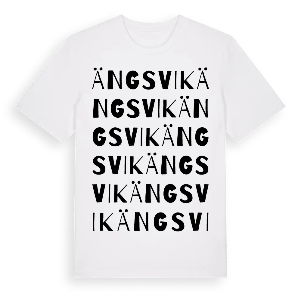 Ängsvik ordlek t-shirt är inspirerad av Ängsvik i Södermanlands län, Sverige. Tröjan är designad för dig som har en speciell koppling till platsen – oavsett om du bor här, har rötterna här eller bara älskar Ängsvik.