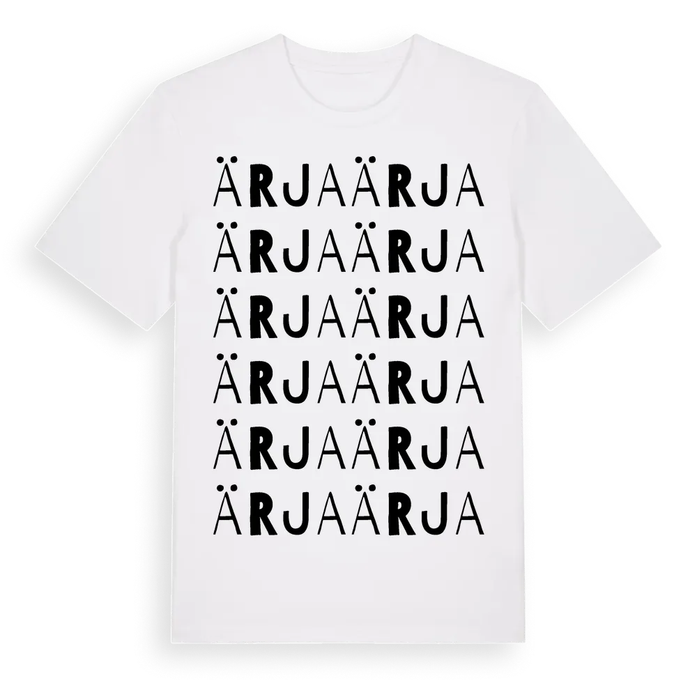 Ärja ordlek t-shirt är inspirerad av byn Ärja i Södermanlands län, Sverige. Tröjan är designad för dig som har en speciell koppling till platsen – oavsett om du bor här, har rötterna här eller bara älskar Ärja.
