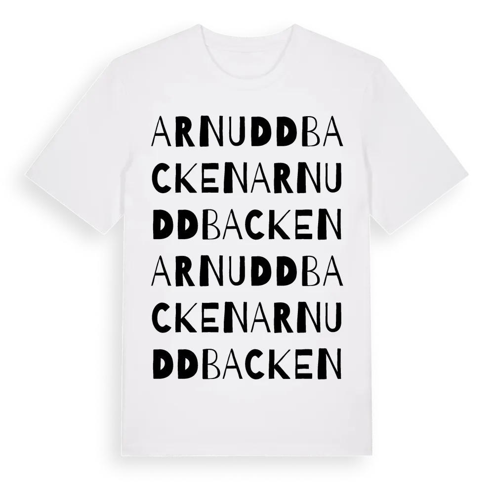 Arnuddbacken ordlek t-shirt är inspirerad av Arnuddbacken i Södermanlands län, Sverige. Tröjan är designad för dig som har en speciell koppling till platsen – oavsett om du bor här, har rötterna här eller bara älskar Arnuddbacken.