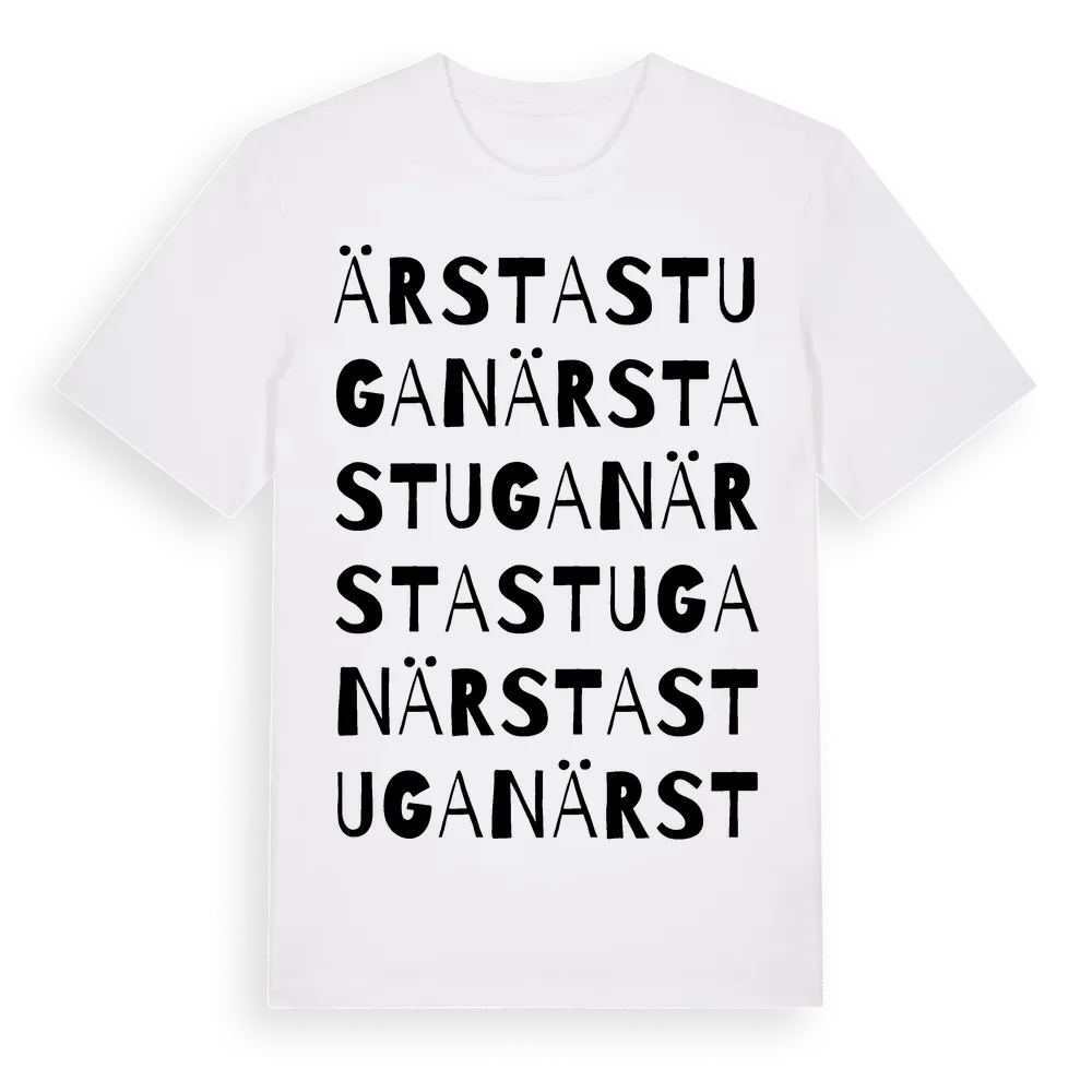 Ärstastugan ordlek t-shirt är inspirerad av Ärstastugan i Södermanlands län, Sverige. Tröjan är designad för dig som har en speciell koppling till platsen – oavsett om du bor här, har rötterna här eller bara älskar Ärstastugan.