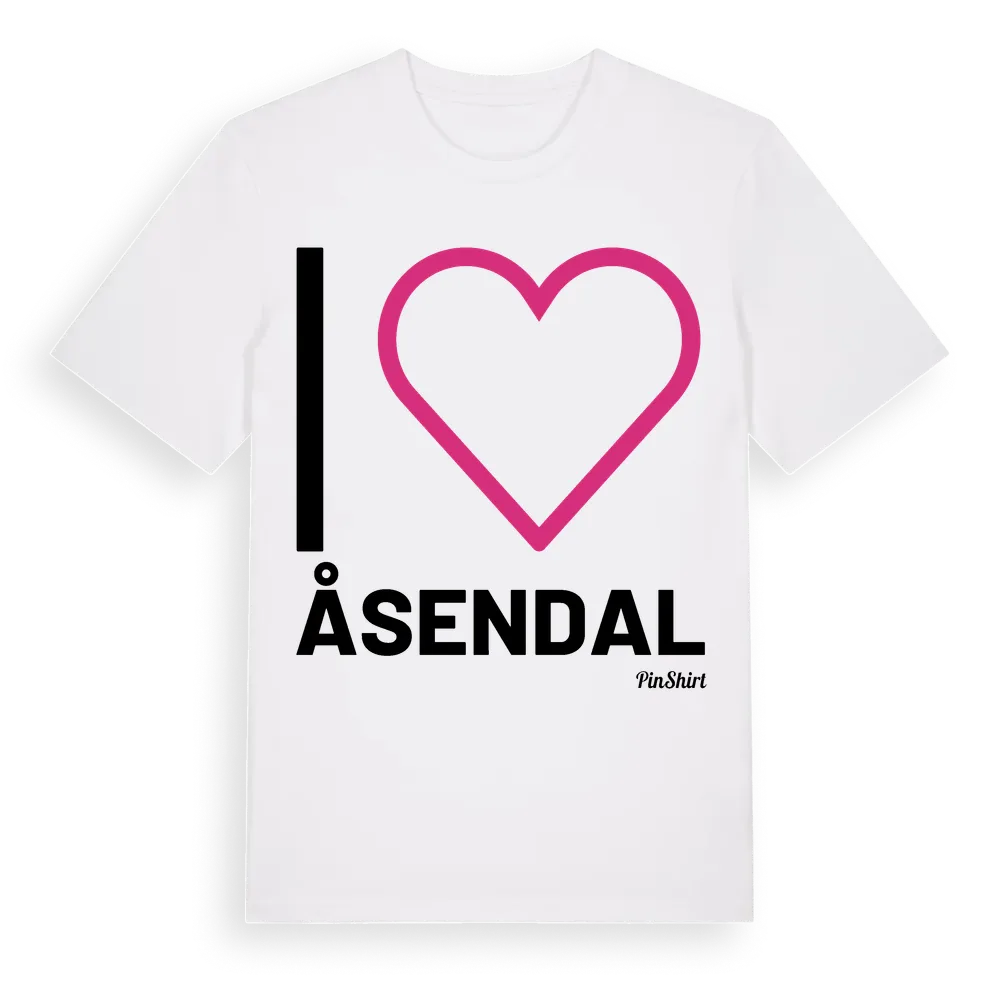 Det klassiska "I ❤ Åsendal"-motivet i stort format som täcker hela bröstet. För dig som vill visa kärleken till Åsendal på riktigt. Premium bomull, unisex – från Åsendal i Södermanlands län.