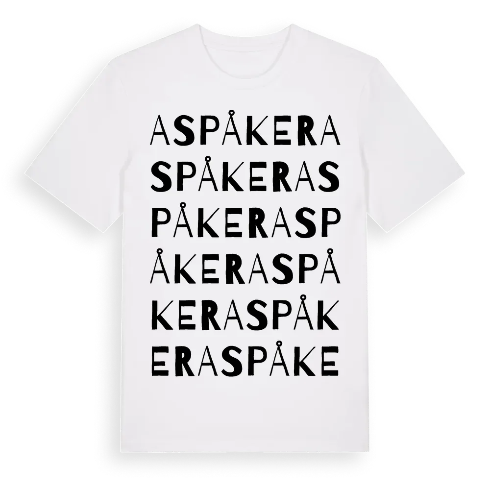 Aspåker ordlek t-shirt är inspirerad av Aspåker i Södermanlands län, Sverige. Tröjan är designad för dig som har en speciell koppling till platsen – oavsett om du bor här, har rötterna här eller bara älskar Aspåker.