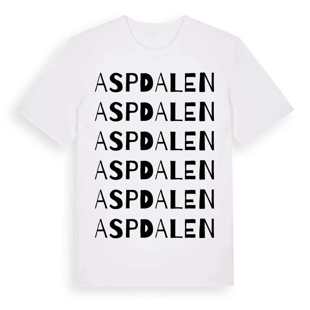 Aspdalen ordlek t-shirt är inspirerad av Aspdalen i Södermanlands län, Sverige. Tröjan är designad för dig som har en speciell koppling till platsen – oavsett om du bor här, har rötterna här eller bara älskar Aspdalen.