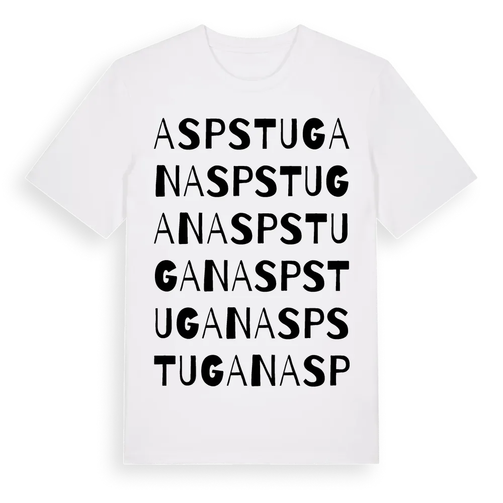 Aspstugan ordlek t-shirt är inspirerad av Aspstugan i Södermanlands län, Sverige. Tröjan är designad för dig som har en speciell koppling till platsen – oavsett om du bor här, har rötterna här eller bara älskar Aspstugan.