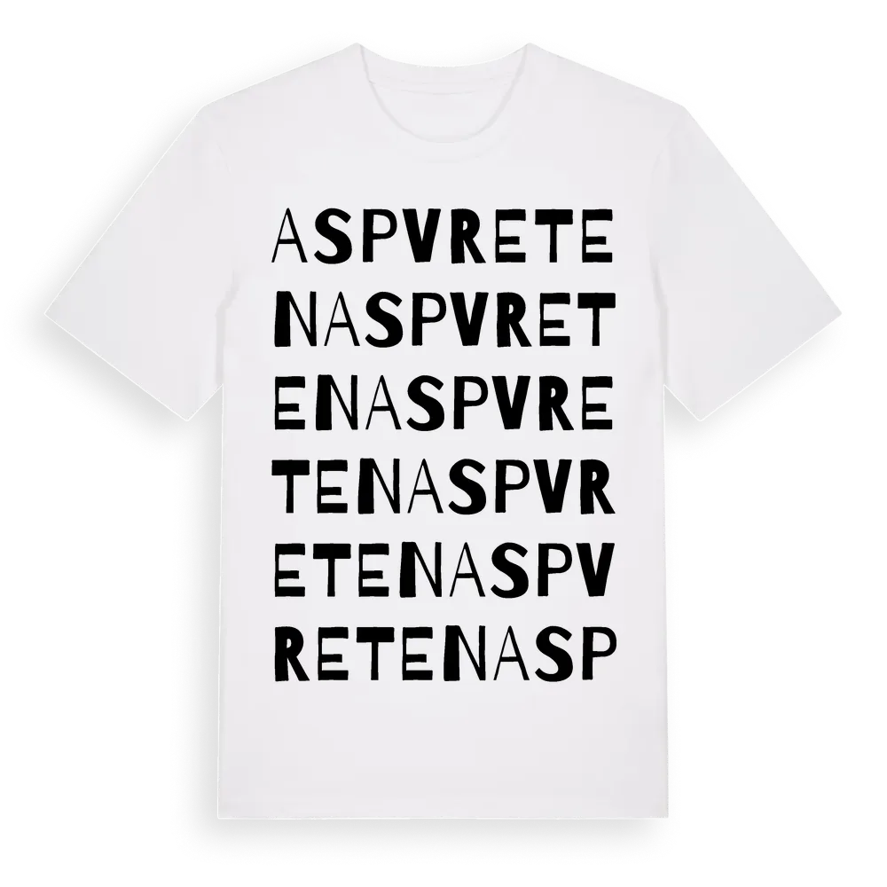 Aspvreten ordlek t-shirt är inspirerad av Aspvreten i Södermanlands län, Sverige. Tröjan är designad för dig som har en speciell koppling till platsen – oavsett om du bor här, har rötterna här eller bara älskar Aspvreten.