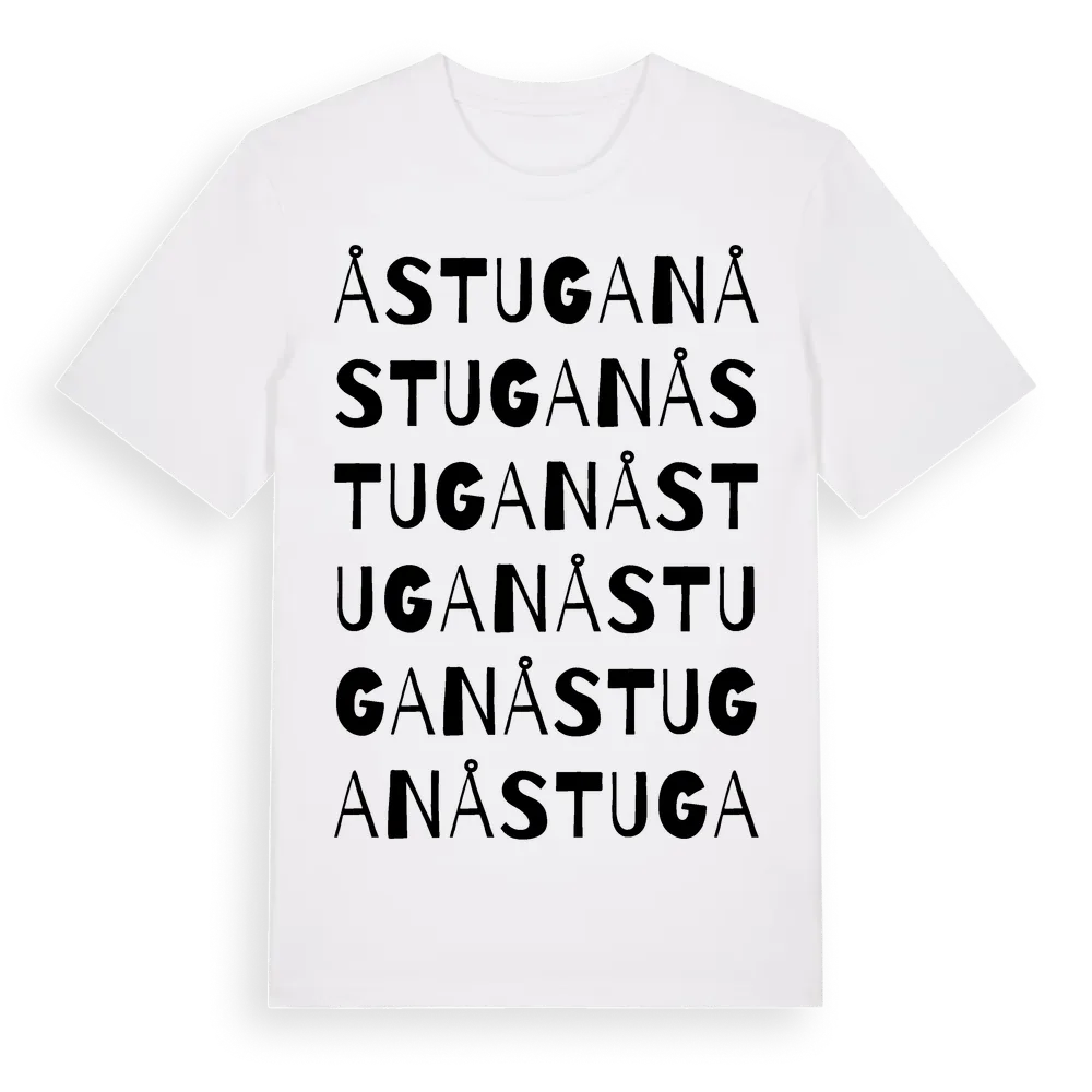 Åstugan ordlek t-shirt är inspirerad av Åstugan i Södermanlands län, Sverige. Tröjan är designad för dig som har en speciell koppling till platsen – oavsett om du bor här, har rötterna här eller bara älskar Åstugan.