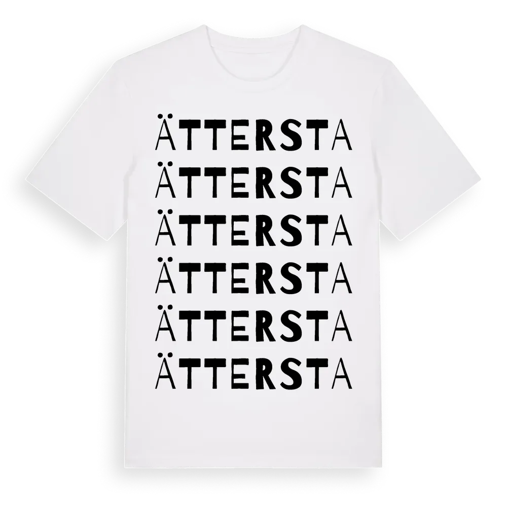 En ordlek byggd på Ätterstas namn. Subtilt och klurig – ett motiv som bara de som verkligen känner platsen fullt ut förstår. Premium bomull, unisex – från byn Ättersta i Södermanlands län.