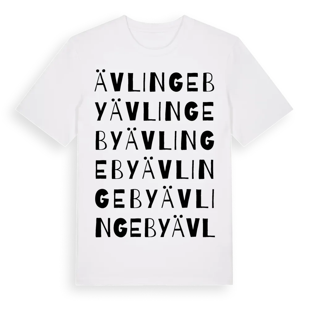 Ävlingeby ordlek t-shirt är inspirerad av Ävlingeby i Södermanlands län, Sverige. Tröjan är designad för dig som har en speciell koppling till platsen – oavsett om du bor här, har rötterna här eller bara älskar Ävlingeby.