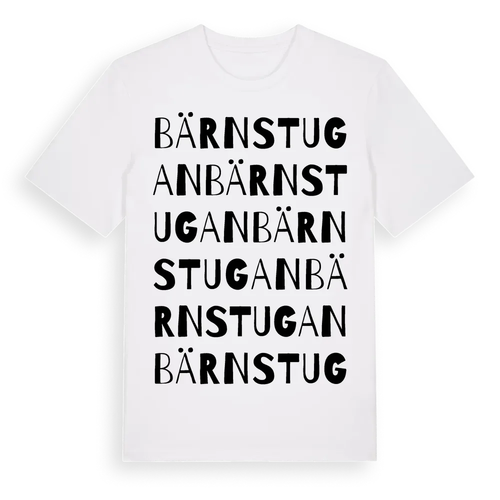 Bärnstugan ordlek t-shirt är inspirerad av Bärnstugan i Södermanlands län, Sverige. Tröjan är designad för dig som har en speciell koppling till platsen – oavsett om du bor här, har rötterna här eller bara älskar Bärnstugan.
