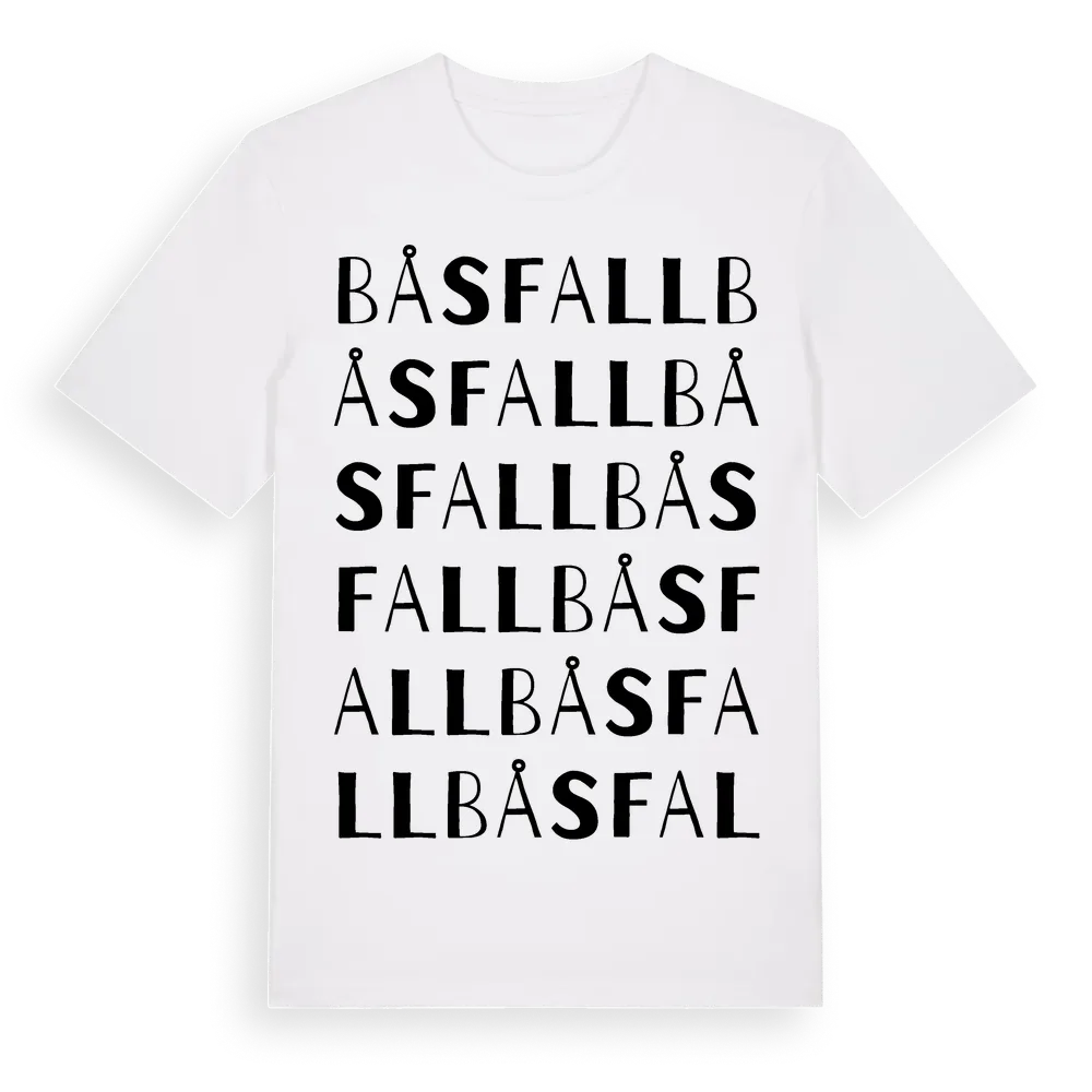 Båsfall ordlek t-shirt är inspirerad av Båsfall i Södermanlands län, Sverige. Tröjan är designad för dig som har en speciell koppling till platsen – oavsett om du bor här, har rötterna här eller bara älskar Båsfall.