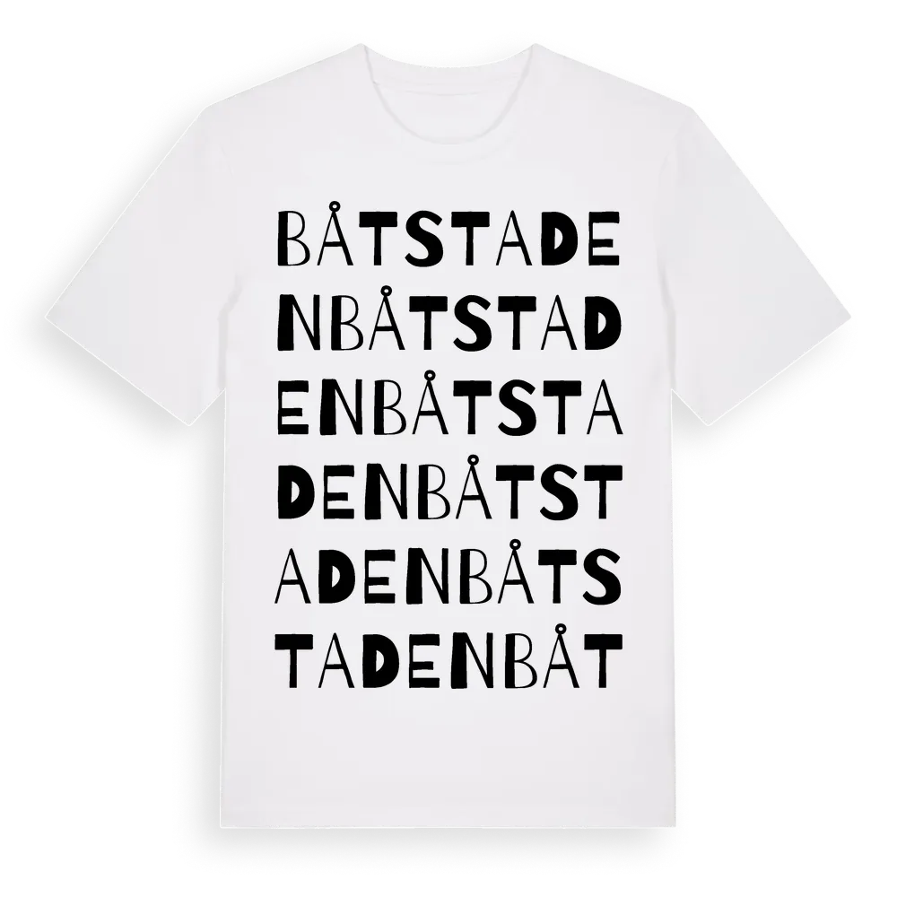 Båtstaden ordlek t-shirt är inspirerad av Båtstaden i Södermanlands län, Sverige. Tröjan är designad för dig som har en speciell koppling till platsen – oavsett om du bor här, har rötterna här eller bara älskar Båtstaden.