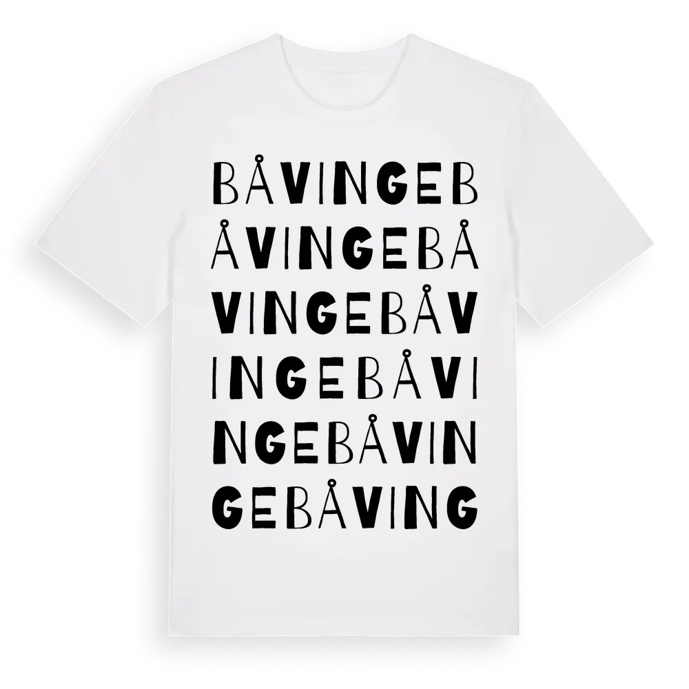 Båvinge ordlek t-shirt är inspirerad av Båvinge i Södermanlands län, Sverige. Tröjan är designad för dig som har en speciell koppling till platsen – oavsett om du bor här, har rötterna här eller bara älskar Båvinge.