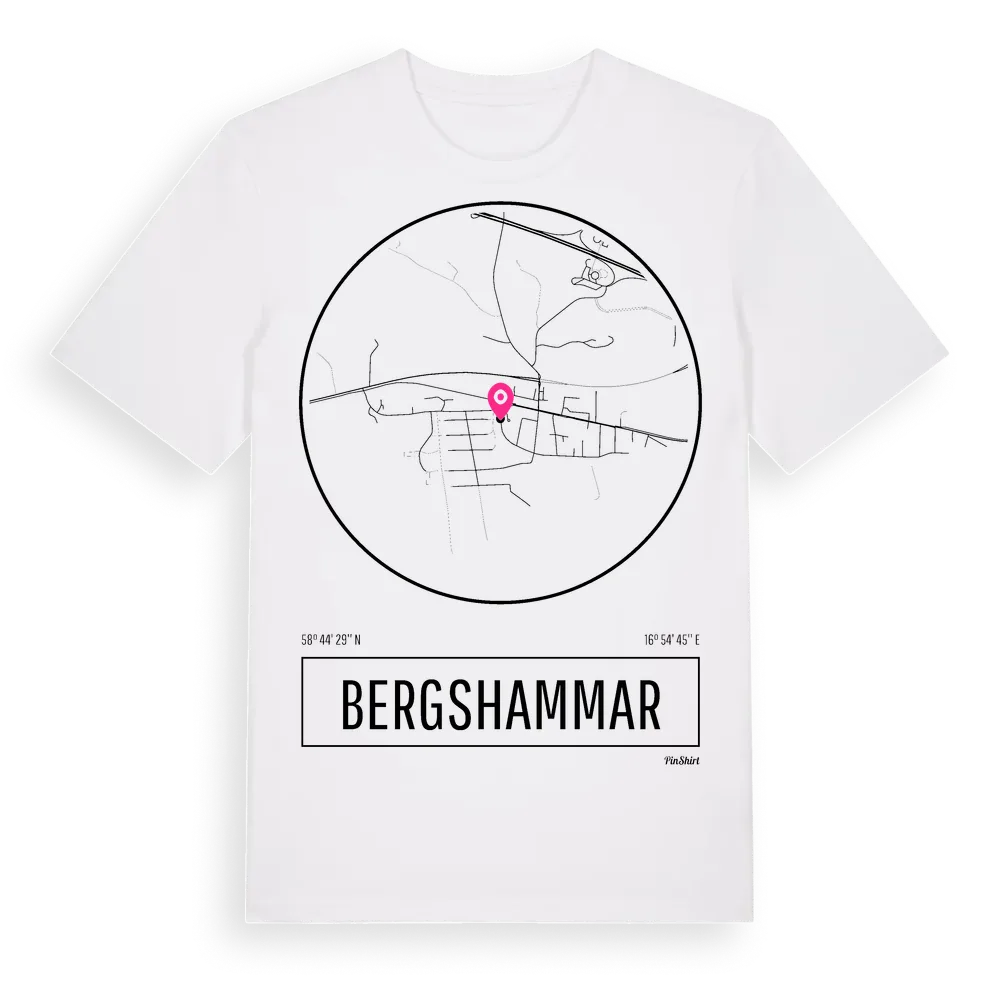 Bergshammar t-shirt är inspirerad av byn Bergshammar i Södermanlands län, Sverige. Tröjan är designad för dig som har en speciell koppling till platsen – oavsett om du bor här, har rötterna här eller bara älskar Bergshammar.