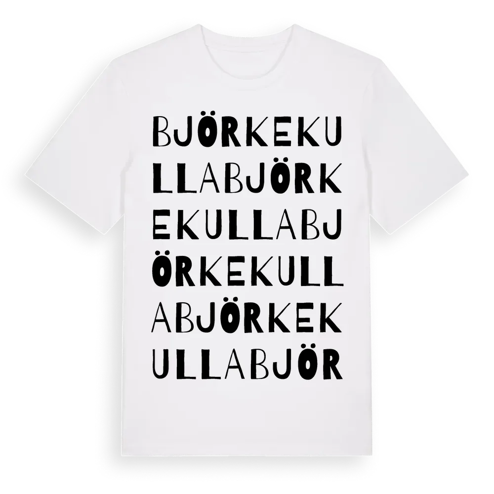 Björkekulla ordlek t-shirt är inspirerad av Björkekulla i Södermanlands län, Sverige. Tröjan är designad för dig som har en speciell koppling till platsen – oavsett om du bor här, har rötterna här eller bara älskar Björkekulla.