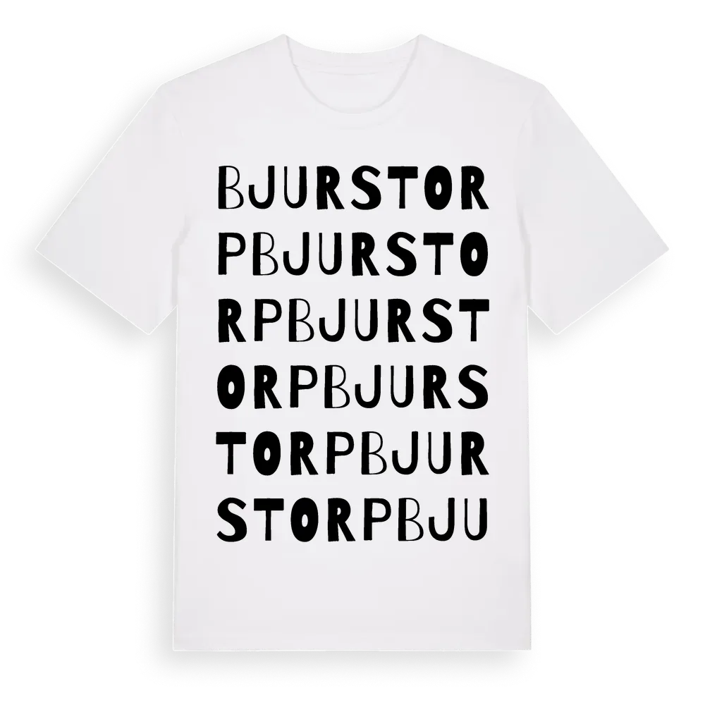 Bjurstorp ordlek t-shirt är inspirerad av Bjurstorp i Södermanlands län, Sverige. Tröjan är designad för dig som har en speciell koppling till platsen – oavsett om du bor här, har rötterna här eller bara älskar Bjurstorp.