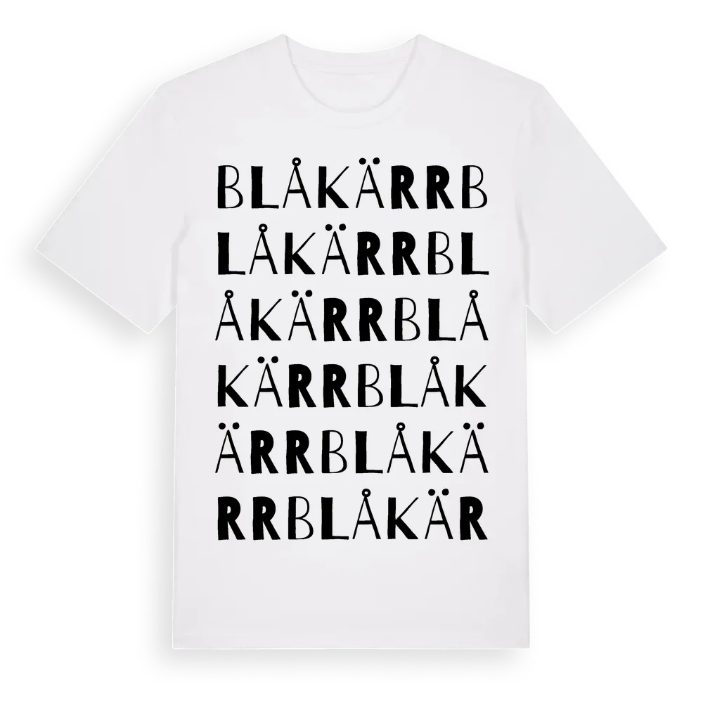 Blåkärr ordlek t-shirt är inspirerad av Blåkärr i Södermanlands län, Sverige. Tröjan är designad för dig som har en speciell koppling till platsen – oavsett om du bor här, har rötterna här eller bara älskar Blåkärr.