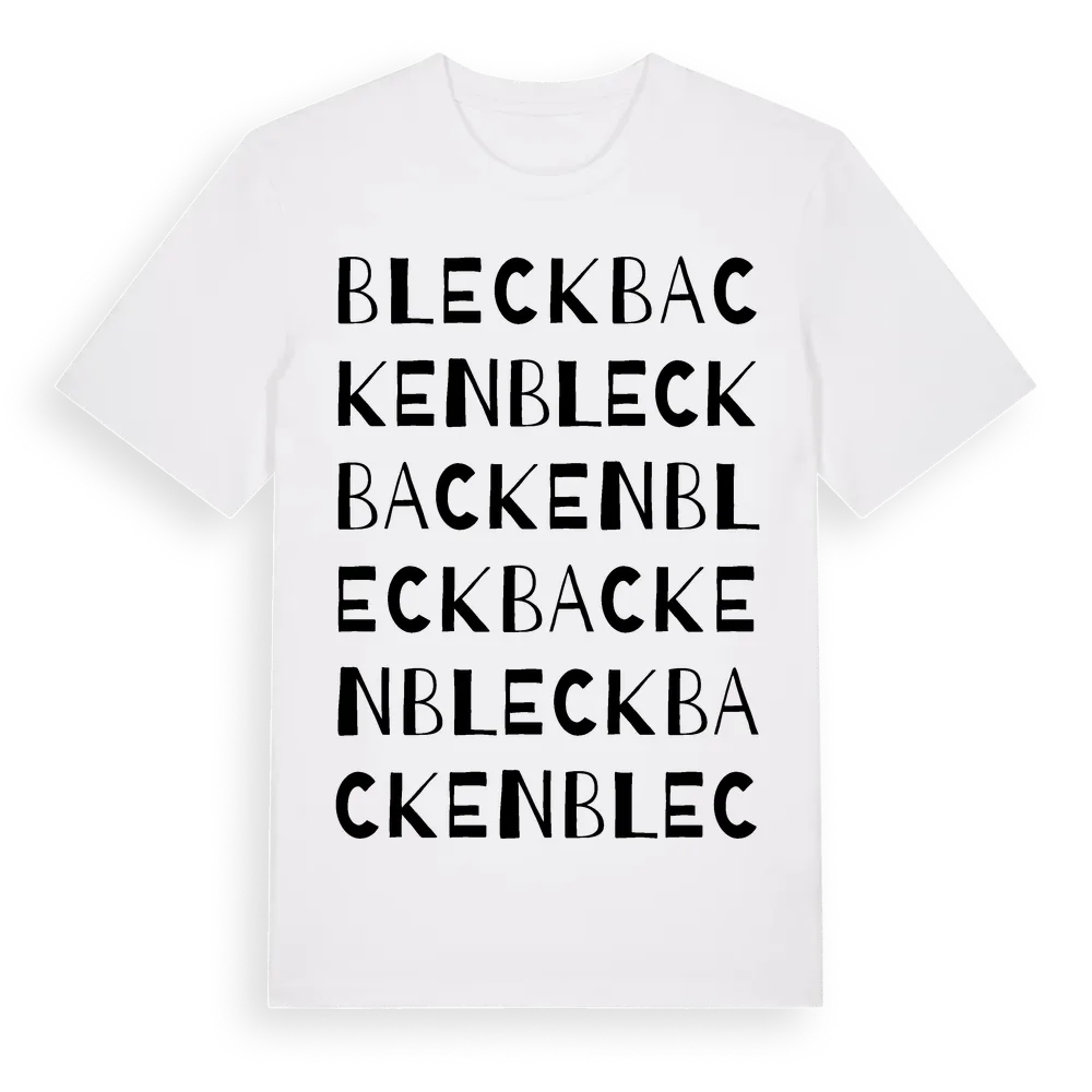 Bleckbacken ordlek t-shirt är inspirerad av Bleckbacken i Södermanlands län, Sverige. Tröjan är designad för dig som har en speciell koppling till platsen – oavsett om du bor här, har rötterna här eller bara älskar Bleckbacken.