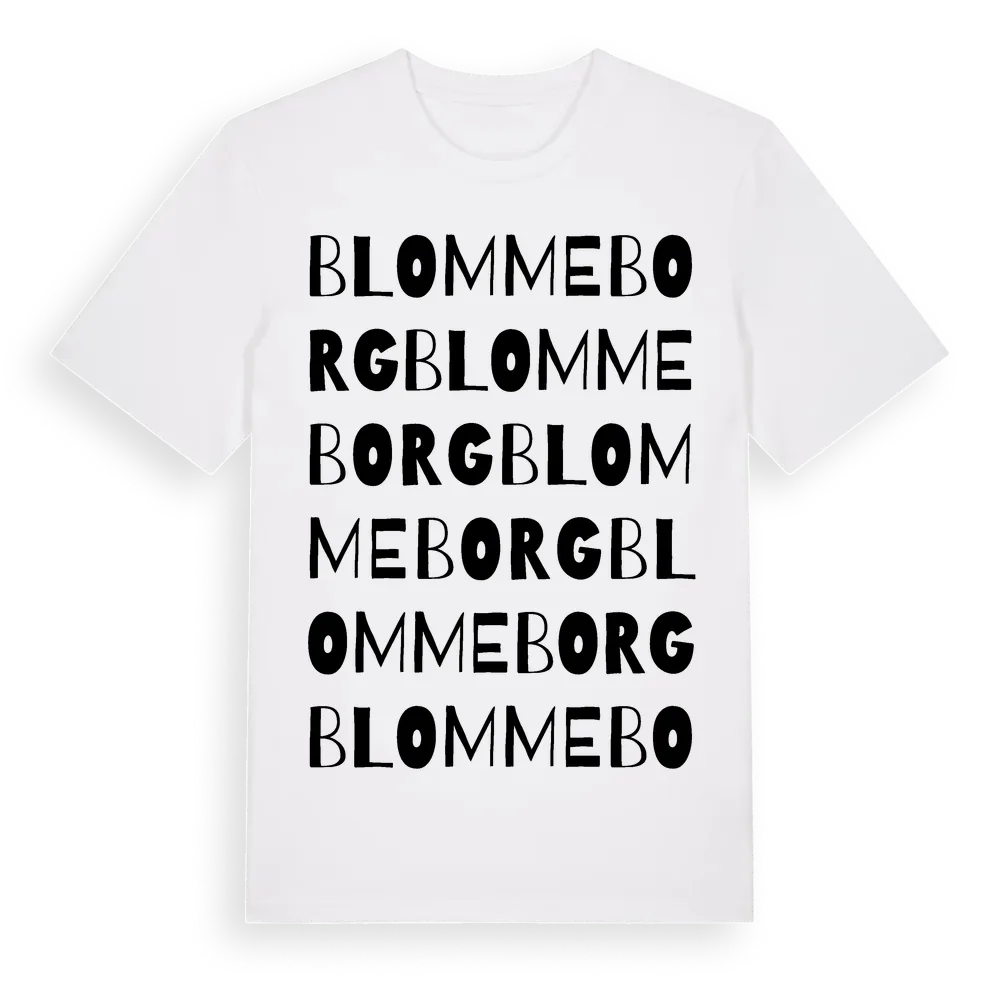 Blommeborg ordlek t-shirt är inspirerad av Blommeborg i Södermanlands län, Sverige. Tröjan är designad för dig som har en speciell koppling till platsen – oavsett om du bor här, har rötterna här eller bara älskar Blommeborg.