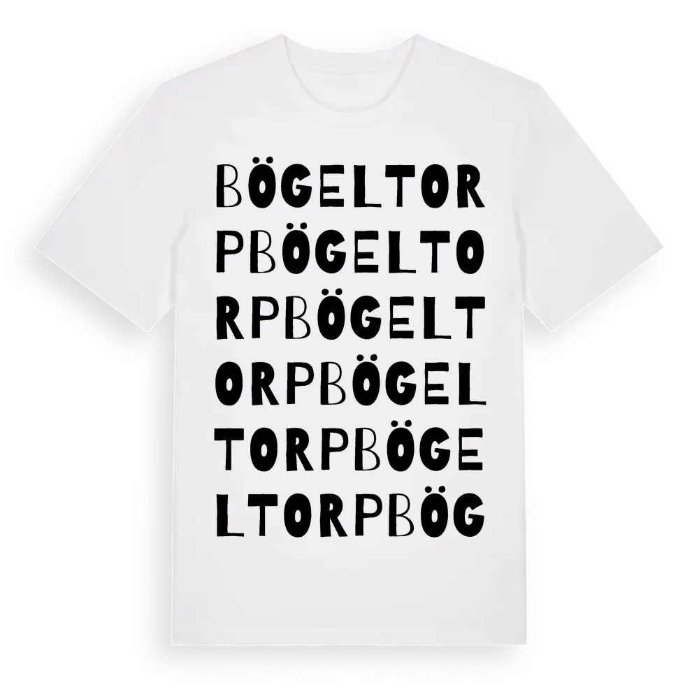 Bögeltorp ordlek t-shirt är inspirerad av Bögeltorp i Södermanlands län, Sverige. Tröjan är designad för dig som har en speciell koppling till platsen – oavsett om du bor här, har rötterna här eller bara älskar Bögeltorp.
