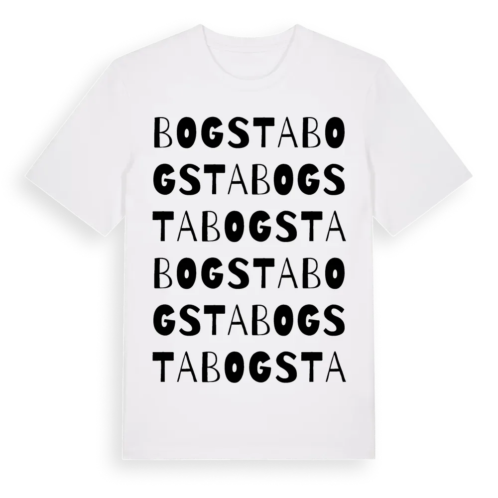 Bogsta ordlek t-shirt är inspirerad av byn Bogsta i Södermanlands län, Sverige. Tröjan är designad för dig som har en speciell koppling till platsen – oavsett om du bor här, har rötterna här eller bara älskar Bogsta.