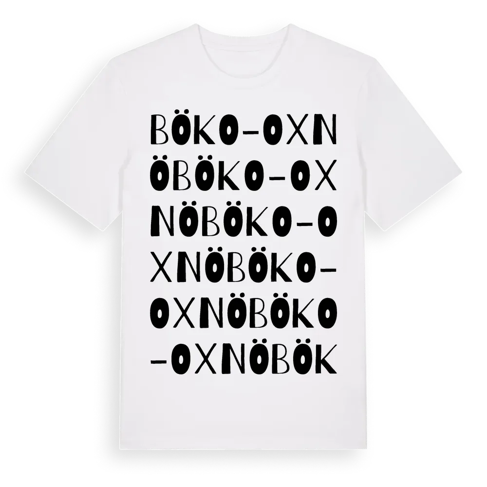 En ordlek byggd på Böko-Oxnös namn. Subtilt och klurig – ett motiv som bara de som verkligen känner platsen fullt ut förstår. Premium bomull, unisex – från ön Böko-Oxnö i Södermanlands län.