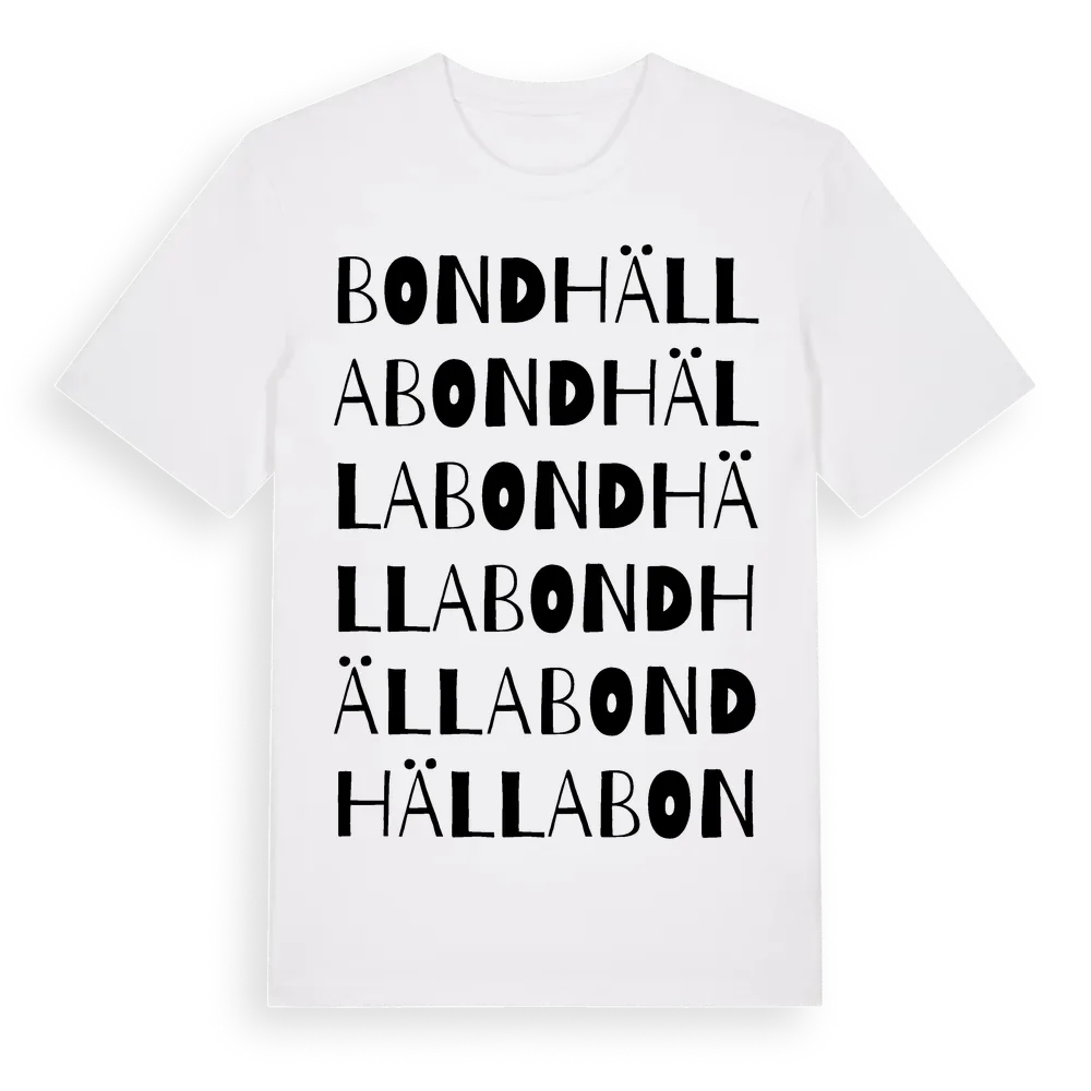 Bondhälla ordlek t-shirt är inspirerad av Bondhälla i Södermanlands län, Sverige. Tröjan är designad för dig som har en speciell koppling till platsen – oavsett om du bor här, har rötterna här eller bara älskar Bondhälla.