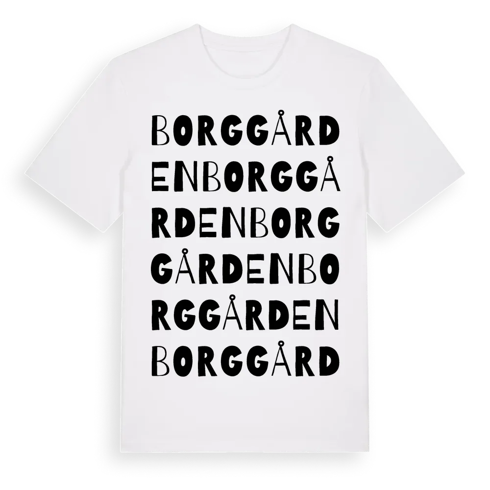 Borggården ordlek t-shirt är inspirerad av Borggården i Södermanlands län, Sverige. Tröjan är designad för dig som har en speciell koppling till platsen – oavsett om du bor här, har rötterna här eller bara älskar Borggården.