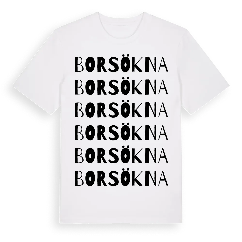 Borsökna ordlek t-shirt är inspirerad av stadsdelen Borsökna i Södermanlands län, Sverige. Tröjan är designad för dig som har en speciell koppling till platsen – oavsett om du bor här, har rötterna här eller bara älskar Borsökna.