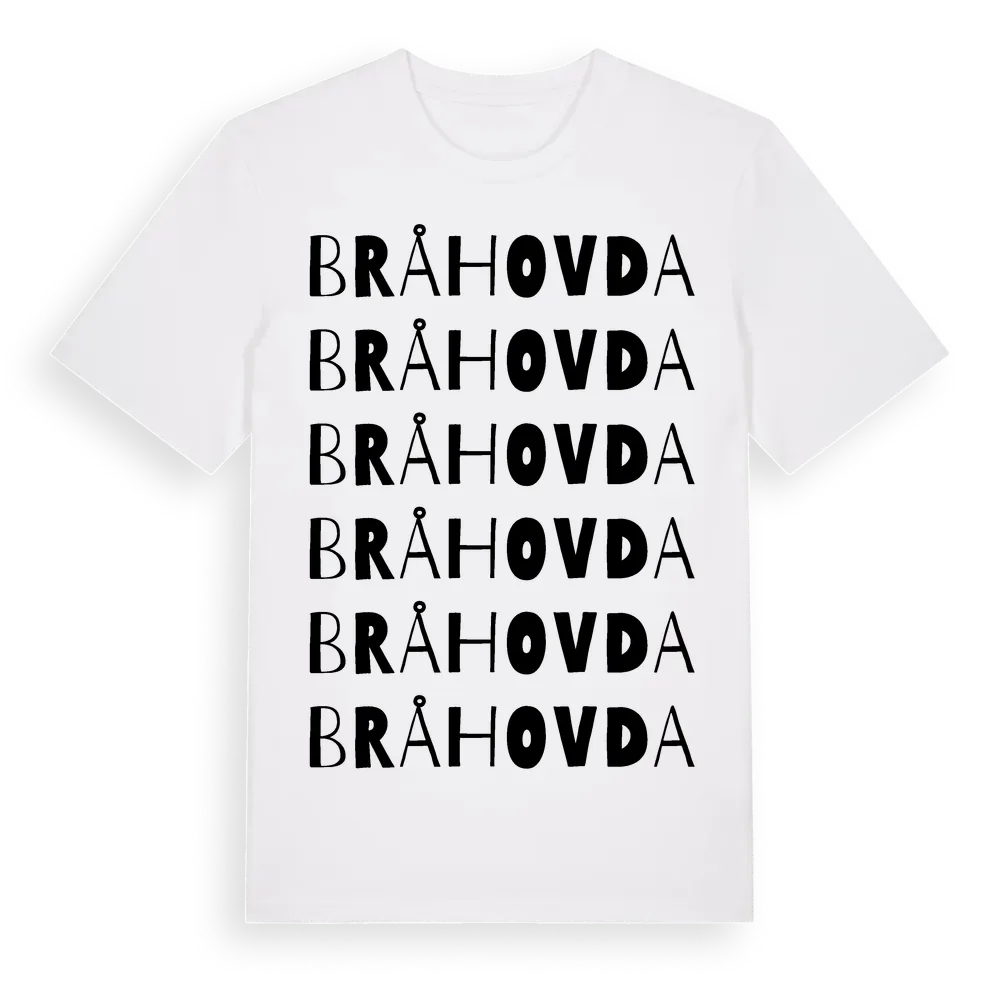 En ordlek byggd på Bråhovdas namn. Subtilt och klurig – ett motiv som bara de som verkligen känner platsen fullt ut förstår. Premium bomull, unisex – från byn Bråhovda i Södermanlands län.