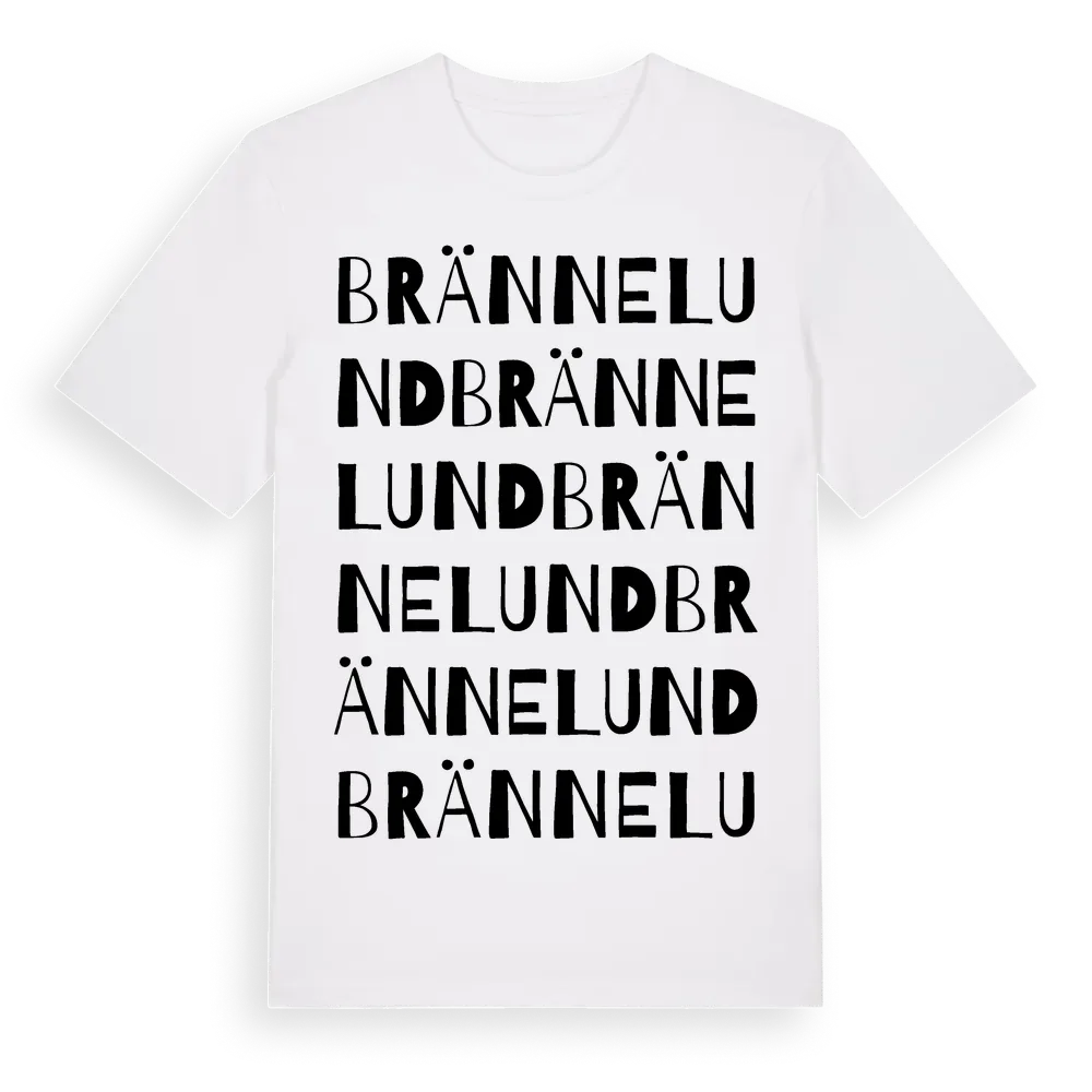 Brännelund ordlek t-shirt är inspirerad av Brännelund i Södermanlands län, Sverige. Tröjan är designad för dig som har en speciell koppling till platsen – oavsett om du bor här, har rötterna här eller bara älskar Brännelund.