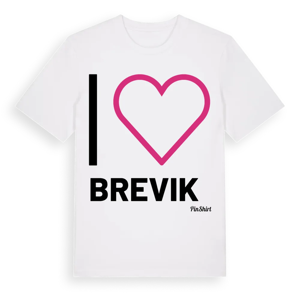 Det klassiska "I ❤ Brevik"-motivet i stort format som täcker hela bröstet. För dig som vill visa kärleken till Brevik på riktigt. Premium bomull, unisex – från Brevik i Södermanlands län.