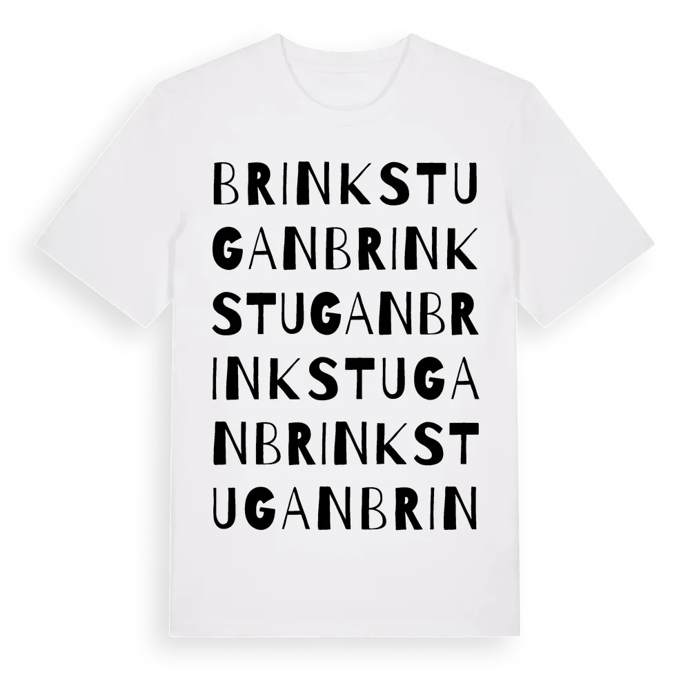 Brinkstugan ordlek t-shirt är inspirerad av Brinkstugan i Södermanlands län, Sverige. Tröjan är designad för dig som har en speciell koppling till platsen – oavsett om du bor här, har rötterna här eller bara älskar Brinkstugan.