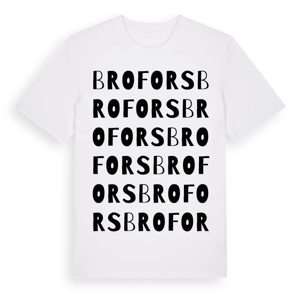 En ordlek byggd på Broforss namn. Subtilt och klurig – ett motiv som bara de som verkligen känner platsen fullt ut förstår. Premium bomull, unisex – från Brofors i Södermanlands län.