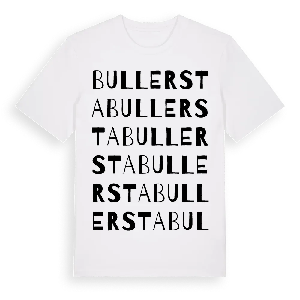 Bullersta ordlek t-shirt är inspirerad av byn Bullersta i Södermanlands län, Sverige. Tröjan är designad för dig som har en speciell koppling till platsen – oavsett om du bor här, har rötterna här eller bara älskar Bullersta.