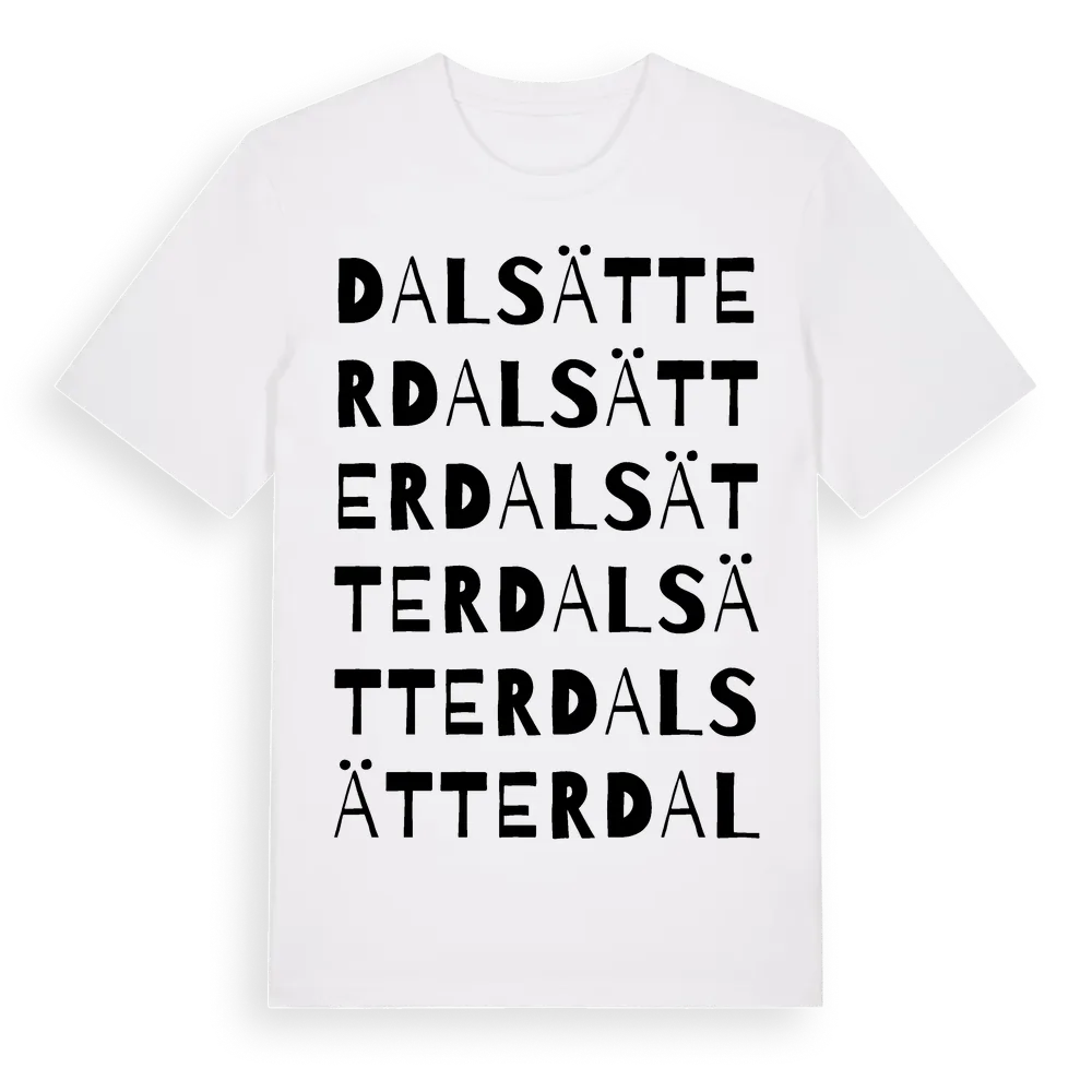 Dalsätter ordlek t-shirt är inspirerad av Dalsätter i Södermanlands län, Sverige. Tröjan är designad för dig som har en speciell koppling till platsen – oavsett om du bor här, har rötterna här eller bara älskar Dalsätter.