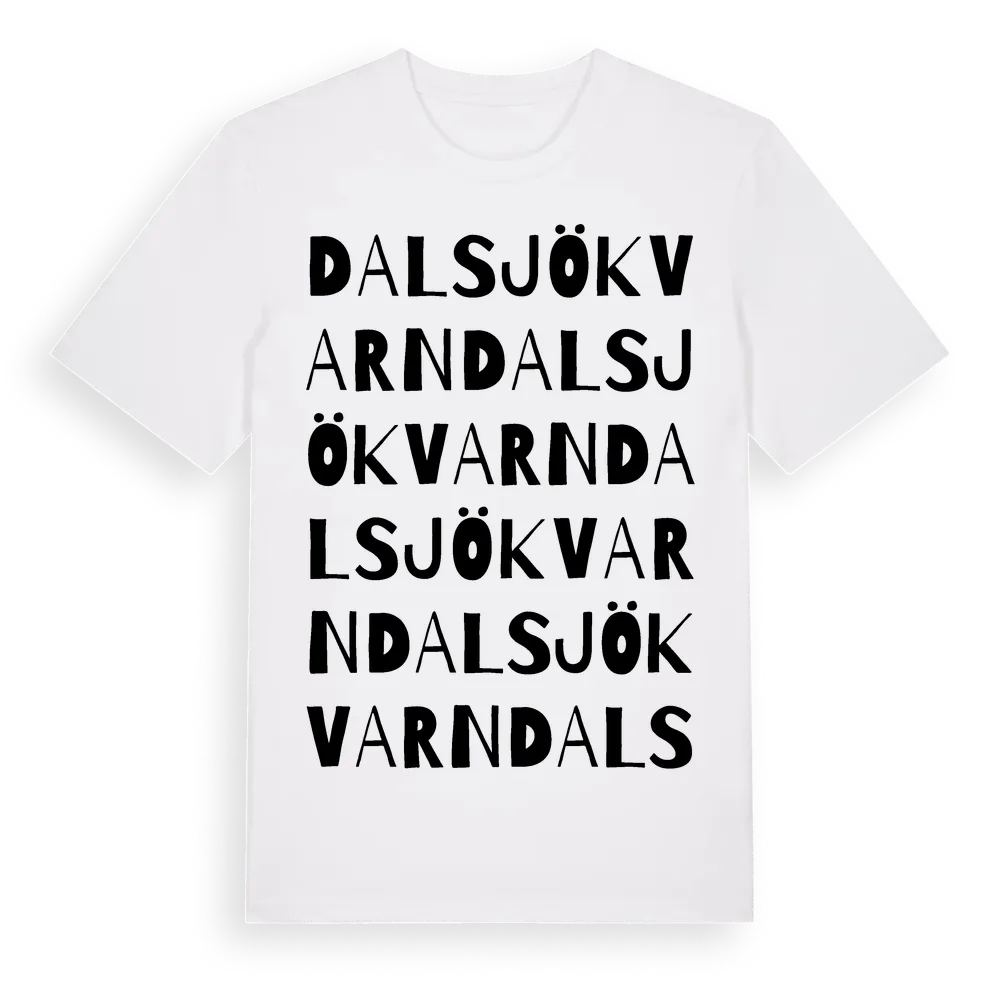Dalsjökvarn ordlek t-shirt är inspirerad av Dalsjökvarn i Södermanlands län, Sverige. Tröjan är designad för dig som har en speciell koppling till platsen – oavsett om du bor här, har rötterna här eller bara älskar Dalsjökvarn.