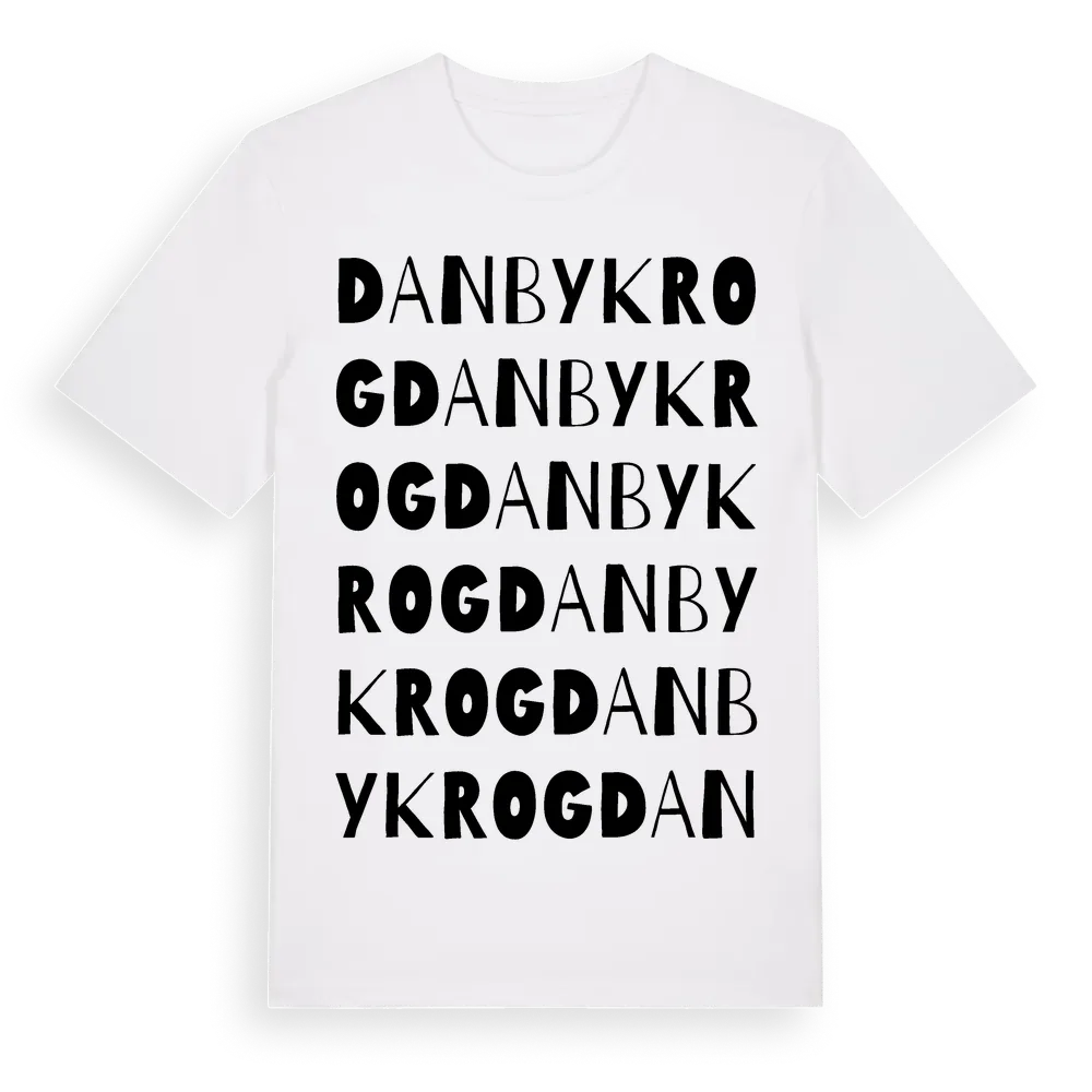 Danbykrog ordlek t-shirt är inspirerad av Danbykrog i Södermanlands län, Sverige. Tröjan är designad för dig som har en speciell koppling till platsen – oavsett om du bor här, har rötterna här eller bara älskar Danbykrog.