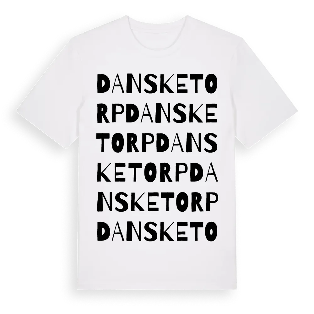 Dansketorp ordlek t-shirt är inspirerad av Dansketorp i Södermanlands län, Sverige. Tröjan är designad för dig som har en speciell koppling till platsen – oavsett om du bor här, har rötterna här eller bara älskar Dansketorp.