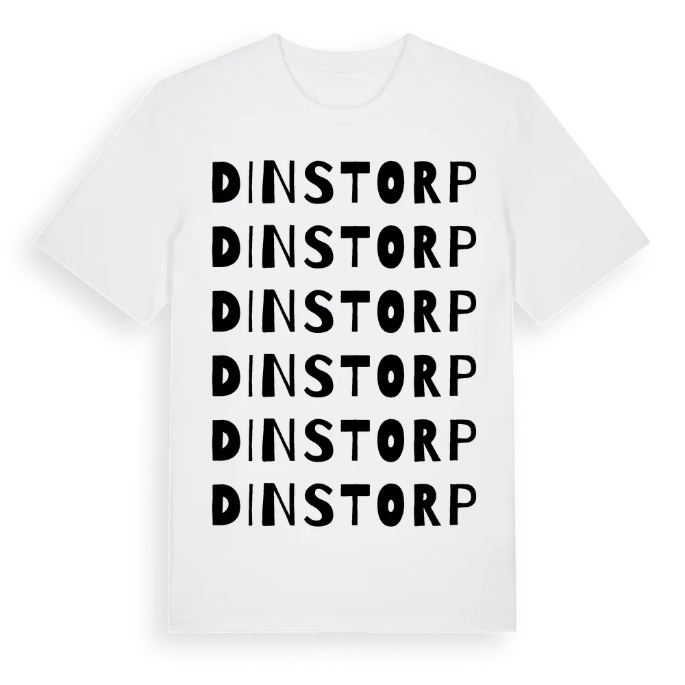 En ordlek byggd på Dinstorps namn. Subtilt och klurig – ett motiv som bara de som verkligen känner platsen fullt ut förstår. Premium bomull, unisex – från Dinstorp i Södermanlands län.