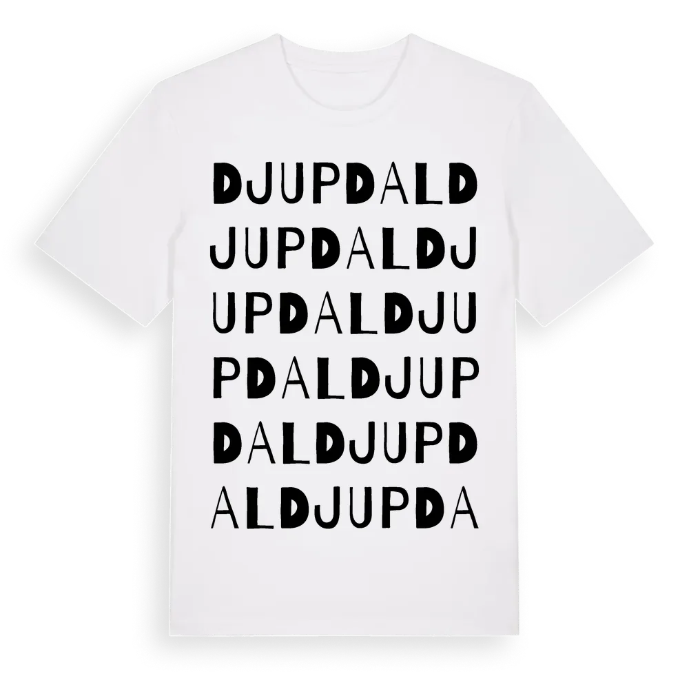 Djupdal ordlek t-shirt är inspirerad av Djupdal i Södermanlands län, Sverige. Tröjan är designad för dig som har en speciell koppling till platsen – oavsett om du bor här, har rötterna här eller bara älskar Djupdal.