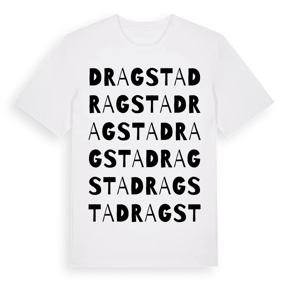 Dragsta ordlek t-shirt är inspirerad av Dragsta i Södermanlands län, Sverige. Tröjan är designad för dig som har en speciell koppling till platsen – oavsett om du bor här, har rötterna här eller bara älskar Dragsta.