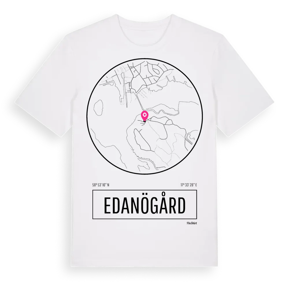 Ett rent, runt tryck med Edanögårds namn. Minimalistiskt och stilrent – perfekt för den som känner platsen utan att skrika det. Premium bomull, unisex – från stadsdelen Edanögård i Södermanlands län.