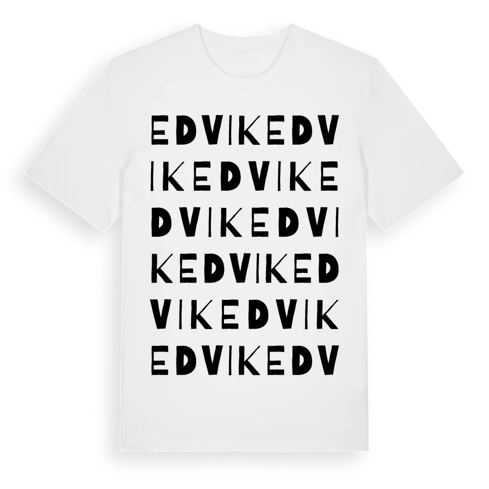 Edvik ordlek t-shirt är inspirerad av Edvik i Södermanlands län, Sverige. Tröjan är designad för dig som har en speciell koppling till platsen – oavsett om du bor här, har rötterna här eller bara älskar Edvik.