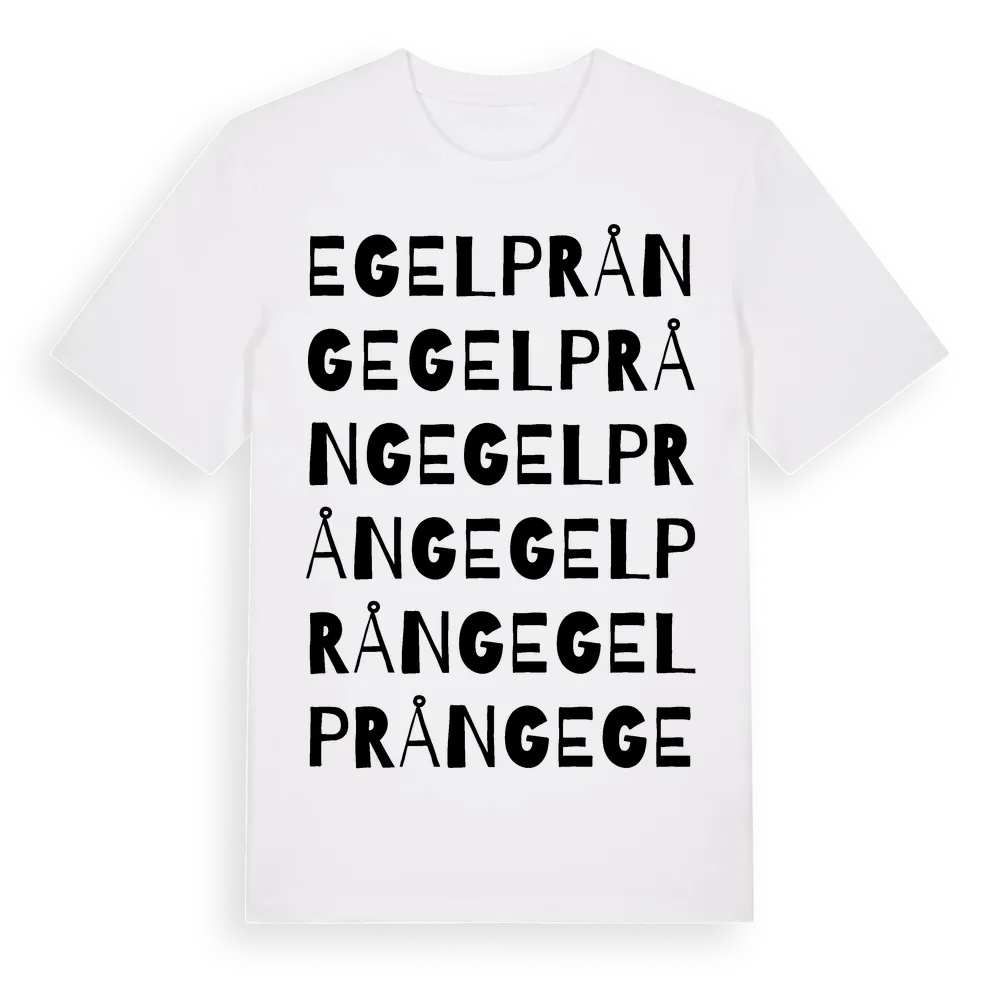 Egelprång ordlek t-shirt är inspirerad av byn Egelprång i Södermanlands län, Sverige. Tröjan är designad för dig som har en speciell koppling till platsen – oavsett om du bor här, har rötterna här eller bara älskar Egelprång.