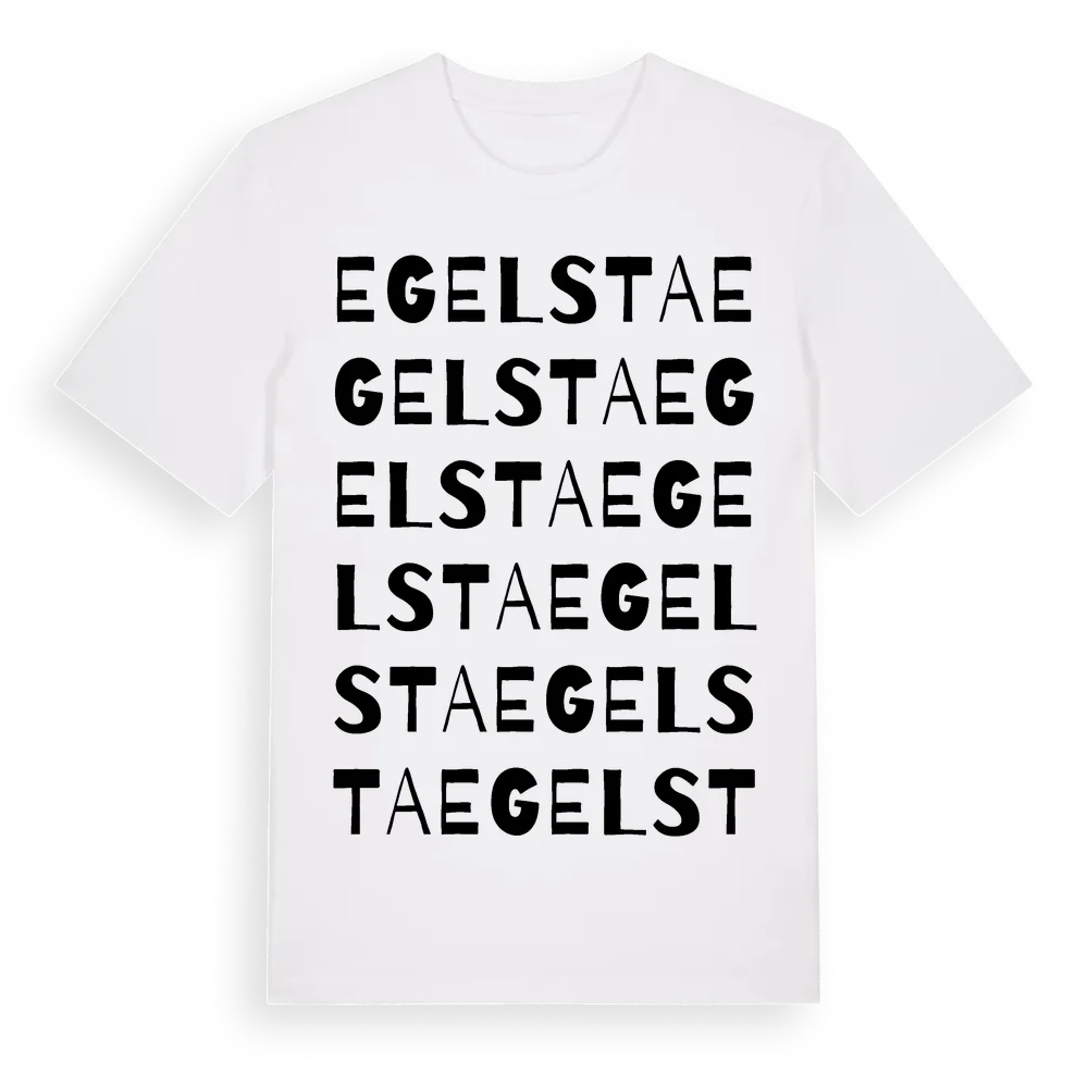 Egelsta ordlek t-shirt är inspirerad av Egelsta i Södermanlands län, Sverige. Tröjan är designad för dig som har en speciell koppling till platsen – oavsett om du bor här, har rötterna här eller bara älskar Egelsta.