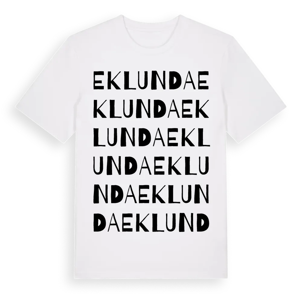 Eklunda ordlek t-shirt är inspirerad av Eklunda i Södermanlands län, Sverige. Tröjan är designad för dig som har en speciell koppling till platsen – oavsett om du bor här, har rötterna här eller bara älskar Eklunda.