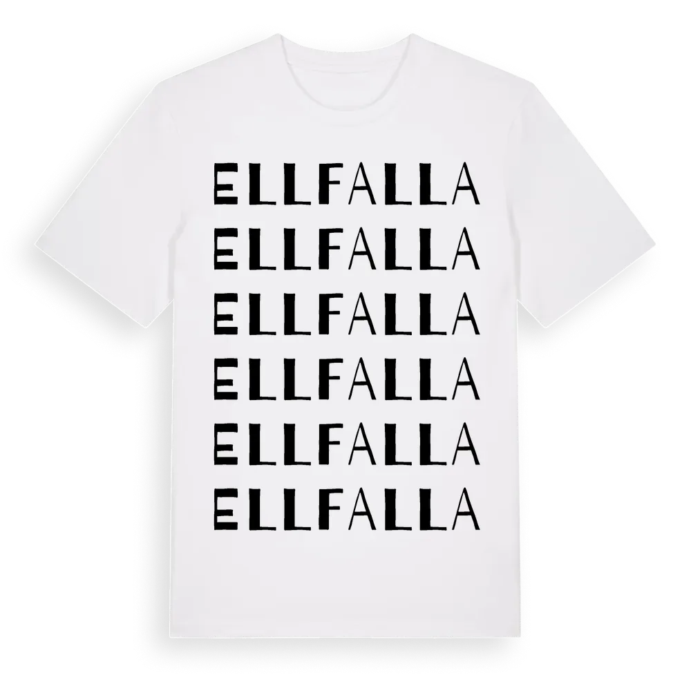 Ellfalla ordlek t-shirt är inspirerad av Ellfalla i Södermanlands län, Sverige. Tröjan är designad för dig som har en speciell koppling till platsen – oavsett om du bor här, har rötterna här eller bara älskar Ellfalla.