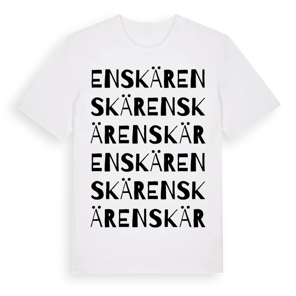Enskär ordlek t-shirt är inspirerad av ön Enskär i Södermanlands län, Sverige. Tröjan är designad för dig som har en speciell koppling till platsen – oavsett om du bor här, har rötterna här eller bara älskar Enskär.